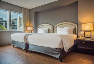 Guests benefit from extensive facilities such as a fitness centre, spa amenities including massage treatments, sauna sessions along with steam rooms, plus a relaxation lounge. Dining options comprise the modern HUB Food Art Lounge restaurant serving breakfast through dinner alongside a bar offering Brazilian coffee and cold drinks throughout the day. Additional conveniences feature concierge service, daily housekeeping, express check-in/out, laundry services, luggage storage, elevator access to all floors, smoke detectors in rooms, accessible parking spaces together with secure garage parking.