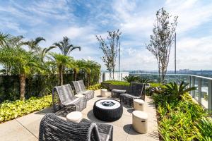 Апартаменты River One completo e moderno - Vista Panorâmica, Metrô 500m e Faria Lima 7min - Piscina, Estacionamento - Okaeri Home представляют собой современное жильё в Сан-Паулу с бесплатной частной парковкой и бесплатным Wi-Fi. Из однокомнатных апартаментов открывается панорамный вид на реку и бассейн с балкона и террасы.
