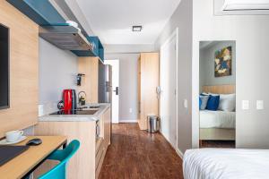 Ogni appartamento dispone di cucina completamente attrezzata con stoviglie, microonde, frigorifero, angolo cottura e tavolo da pranzo per la preparazione e il consumo dei pasti. Le unità monolocali sono dotate di un letto singolo oltre a scrivania da lavoro, armadio o guardaroba, cassaforte personale, cuscini sintetici non piumati e biancheria da letto per assicurare il massimo comfort. I bagni privati includono docce fornite di shampoo, balsamo e sapone per il corpo oltre ad articoli da toilette gratuiti e asciugacapelli.
