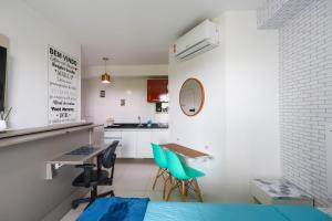 Чистая и компактная квартира с удобной кроватью и всем необходимым: индукционная плита, кофеварка, микроволновка, минибар и базовая посуда. В ванной был хороший душ с сильной струёй воды, а в шкафчике лежал отпариватель. Телевизор стоял напротив кровати, интернет работал без проблем. Персонал жилого комплекса приветливый, бассейн ухоженный и открыт до полуночи. В здании была небольшая лавка с товарами первой необходимости. Расположение отличное - рядом автовокзал Тьете, легко вызвать Uber, а вечером тихо, с балкона открывался вид на школу.