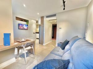 Accommodation offers an air-conditioned room featuring one bed and two futons alongside a seating area and dining table. The kitchen is fully equipped with a refrigerator, microwave, coffee machine, kitchenware, and other essentials for self-catering needs.