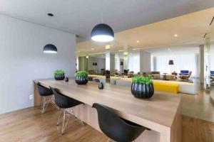 Located less than 1 km from Allianz Parque, Studio 416 - Turriasú is a modern apartment in Sao Paulo featuring air conditioning and an outdoor swimming pool with city and pool views. This single-room property includes a balcony that overlooks the pool as well as one bathroom.