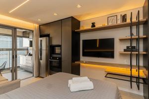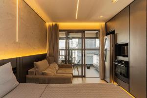 Featuring a pool with a view and a private sauna, Studio 806 - Z Cotovia, Próximo ao Shopping Ibirapuera - Localização Privilegiada em Moema is an air-conditioned apartment located in Sao Paulo. This one-room property includes city views from its balcony and terrace as well as free WiFi throughout the unit.