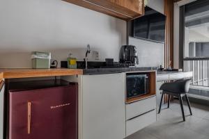 Das Studio Aconchegante e Moderno verfügt über eine voll ausgestattete Küche mit Kochfeld, Mikrowelle, Kühlschrank sowie Kaffee- und Teezubereitungsmöglichkeiten inklusive Kaffeemaschine. Außerdem sind Küchenutensilien sowie ein Essbereich vorhanden. Gemeinschaftlich nutzbare Bereiche umfassen eine Terrasse mit Blick auf den Garten sowie eine Bar vor Ort zum Entspannen. Darüber hinaus steht Gästen kostenfreies WLAN in allen Bereichen zur Verfügung, die Rezeption ist rund um die Uhr besetzt.