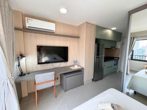 Located just 4.3 km from Pacaembu Stadium, Studio aconchegante em Pinheiros is a well-equipped apartment in Sao Paulo featuring air conditioning and an outdoor swimming pool with garden views. This one-room property includes a comfortable bedroom and offers a terrace for guests to enjoy.