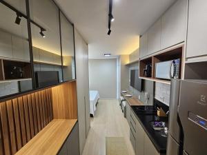 Featuring a terrace and balcony, Studio com Varanda - Brooklin is an apartment located in Sao Paulo with one room. This air-conditioned accommodation offers a unique living space complete with a fully equipped kitchen and private bathroom, situated just 4.6 km from Tokio Marine Hall.