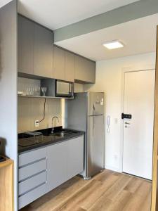 Апартаменты с полным оснащением и кондиционированием воздуха расположены всего в 230 метрах от станции метро Бруклин в Сан-Паулу. В однокомнатной квартире есть балкон, бесплатный Wi-Fi и современный телевизор с плоским экраном. В здании предусмотрен лифт для удобства передвижения.