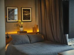 The apartment includes one bedroom and a living room furnished with a sofa and flat-screen TV. The fully equipped kitchen features an oven, stovetop, microwave, refrigerator, coffee machine, kitchenette area as well as dining table and tea and coffee making facilities. In-room amenities include air conditioning, heating, iron with ironing board, clothes drying rack, alarm clock, non-feather pillows, bed linen and towels.