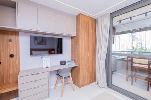 Featuring a rooftop pool and elevator access, Studio Itaim Bibi - Elegante (Completo) 509 is located in the Itaim Bibi District of Sao Paulo. This apartment includes one room and offers views that include a games room for entertainment.