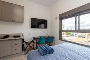 Featuring a rooftop pool and full-day security, Studio moderno ao lado do Metrô Alto do Ipiranga com piscina e academia is located in the Ipiranga district of Sao Paulo. This apartment includes one room and offers city and garden views along with access to a sun terrace.