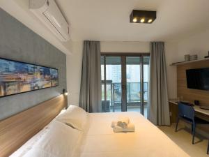 Located in Sao Paulo, Studio na Vila Madalena, Metrô ao Lado e Conforto! is an apartment featuring a rooftop pool and city views from its balcony. This single-room accommodation offers private parking on site at an additional charge and includes lift access for convenience.
