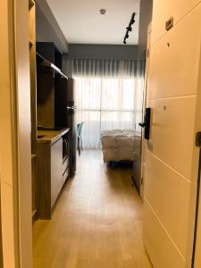 Inside, guests will find one bed along with a kitchenette equipped with a microwave, refrigerator, and kitchenware. The apartment includes air conditioning, a work desk, wardrobe, safe deposit box, shower room facilities with toilet access, and entertainment options such as a flat-screen TV.