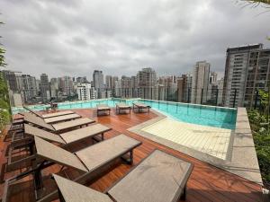 Featuring air-conditioned accommodation with a terrace and an exclusive rooftop, Studio próximo ao Allianz Parque - Rooftop exclusivo is located in Sao Paulo just under 1 km from Allianz Parque. This apartment offers a year-round outdoor pool and free WiFi throughout its soundproof space, comprising one room.