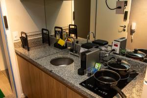 Studio blízko Allianz Parque nabízí klimatizovaný apartmán v São Paulu, vzdálený jen 800 metrů od Allianz Parque. Hosté zde mají k dispozici střešní bazén a bezplatné Wi-Fi. Tento jednopokojový apartmán je vybaven televizí s plochou obrazovkou a zahrnuje ložní prádlo i ručníky pro pohodlí hostů.
