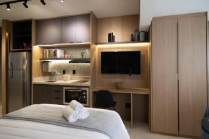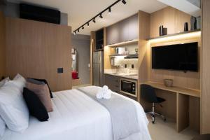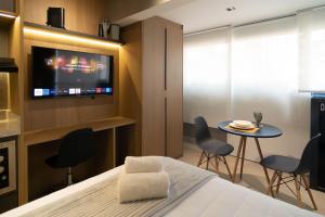 Апартаменты Studio Roma, комфорт и отличное расположение всего в 600 метрах от MASP São Paulo - это жилье с фитнес-центром и кондиционером в Сан-Паулу. В апартаментах одна комната с видом на сад.