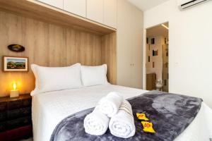 Ogni appartamento dispone di aria condizionata, due letti, bagno privato con set di cortesia e asciugacapelli oltre a comfort quali ferro da stiro, armadio, scrivania e zona soggiorno. L’angolo cottura è completo di forno, piano cottura, microonde, tostapane, macchina per il caffè e frigorifero con utensili da cucina completi.
