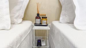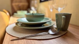 Квартира с кондиционером включает отдельную спальню с двумя кроватями для комфортного пребывания гостей. Полностью оборудованная мини-кухня оснащена холодильником, микроволновой печью и кухонной утварью для удобного приготовления пищи на месте. Дополнительно предоставляются шкаф или гардеробная зона, рабочий стол, утюг, постельное бельё со синтетическими подушками без пера и полотенца.