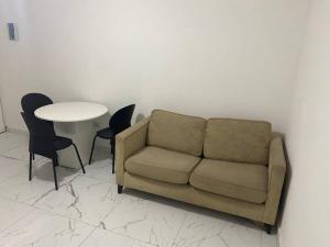 L’appartamento dispone di una camera da letto separata con un letto singolo e un soggiorno arredato con divano e zona salotto. Gli ospiti possono usufruire di una cucina attrezzata con angolo cottura completo di piano cottura, frigorifero, microonde, minibar, tavolo da pranzo e tutti gli utensili necessari per maggiore comodità. Il bagno privato include una doccia privata con prodotti per il corpo forniti. Altri comfort presenti nella camera comprendono asciugamani, biancheria da letto sintetica senza piume e accesso alla lavatrice.