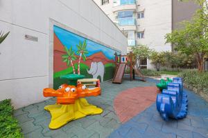 Services at Vossa Bossa Cadoro include free WiFi throughout the premises along with internet access and television in every unit. The complex offers an outdoor swimming pool alongside a children’s playground and garden areas furnished for outdoor dining on balconies or patios. A lift services guests conveniently while a 24-hour front desk manages express check-in/check-out procedures. Additional amenities consist of smoke detectors, fire extinguishers inside apartments, private entrances to units located on the ground floor level plus onsite parking garages.