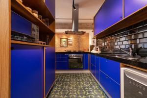 This three-bedroom apartment features three bathrooms equipped with hairdryers and complimentary toiletries for guest convenience. The fully equipped kitchen offers modern appliances such as a refrigerator, stovetop, oven, microwave, dishwasher, coffee machine and complete kitchenware to prepare meals comfortably. Additional in-room amenities include air conditioning, a seating area with television, washing machine with clothes drying rack, iron, work desk as well as bed linen and towels.